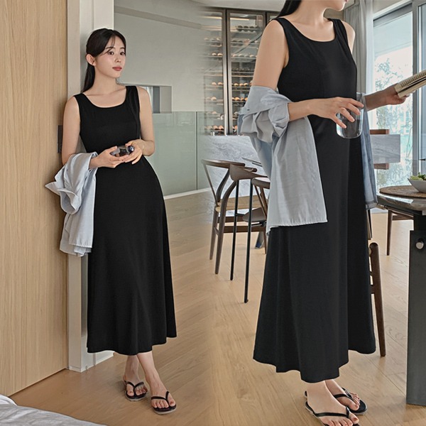 [쿨링원피스🧊/흠뻑쇼][MADE] 호릿 슬림 스판 슬리브리스 나시 롱원피스(44~99) (냉감원피스-여름원피스-썸머원피스-휴양지룩-페스티벌룩-워터밤-장마룩-장마템-페스티벌)
