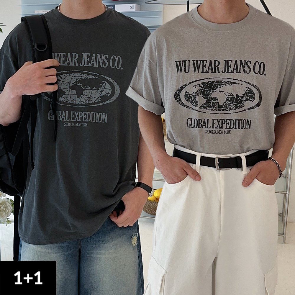 [1+1] 얇은 비침없는 여름 30수 면 반팔티 세미 오버핏 남녀공용 커플 레터링 프린팅 반팔 티셔츠