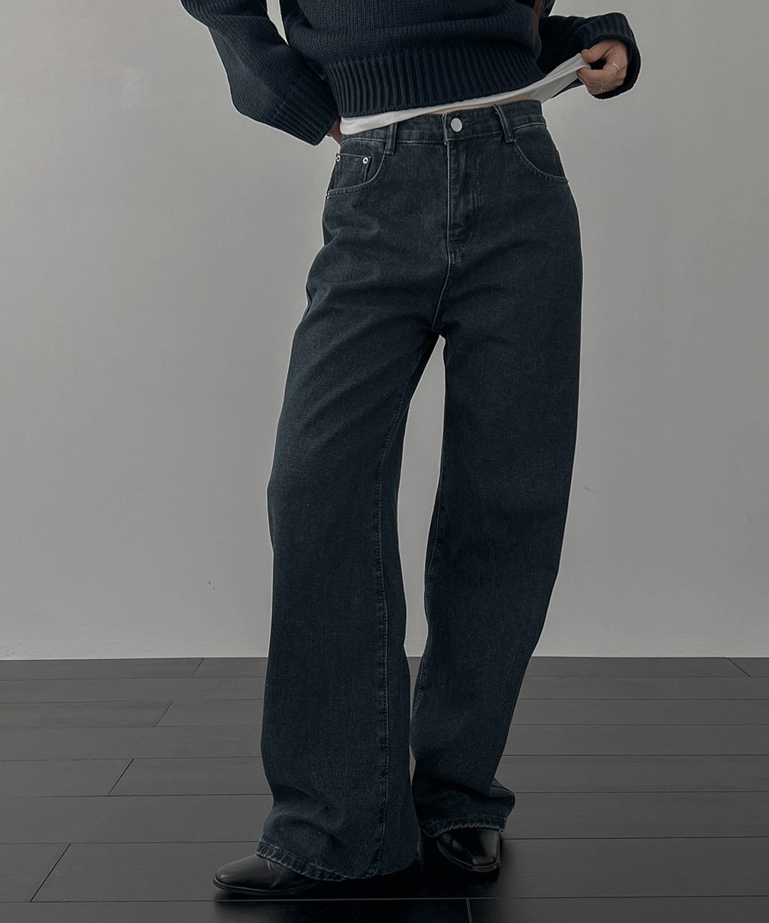 [기모추가] 에센셜 와이드 워싱 데님