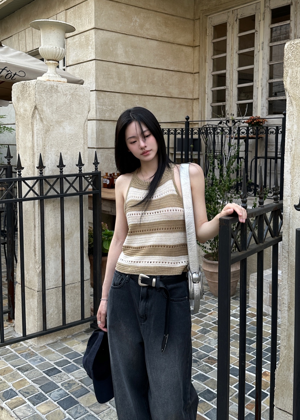 비켄 썸머 크로셰 스트라이프 니트 나시