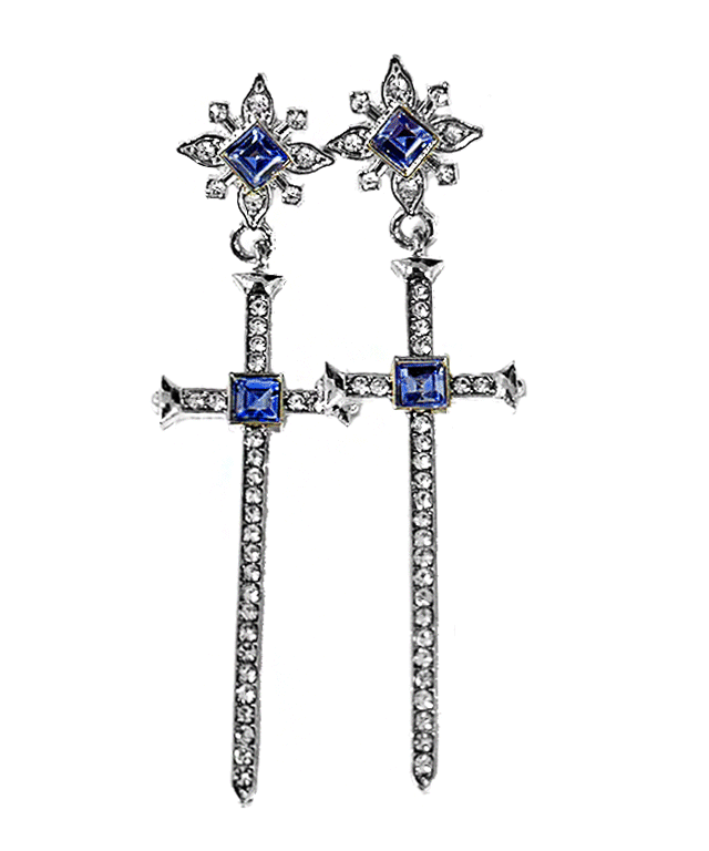Blue Sword 파란 검 칼 스워드 귀걸이 화려한 아이돌 블루 시크