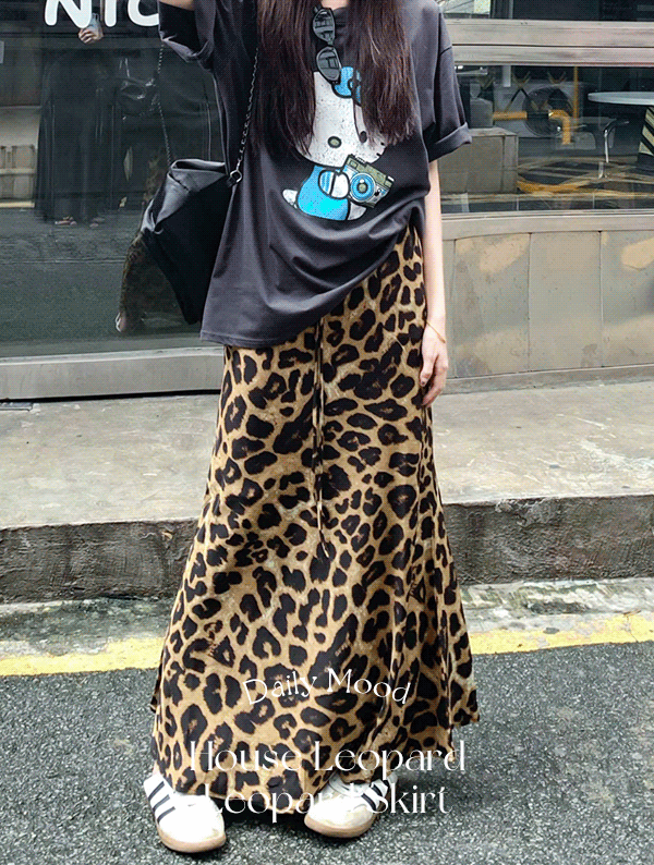 [긱스룩✨유니크] 하우스 레오파드 롱 스커트 SK2495여름 간절기 가을 쉬폰 롱 A라인 플레어 밴딩 배색 호피 여행 휴가룩 휴양지룩 스윔룩 수영복 바캉스
