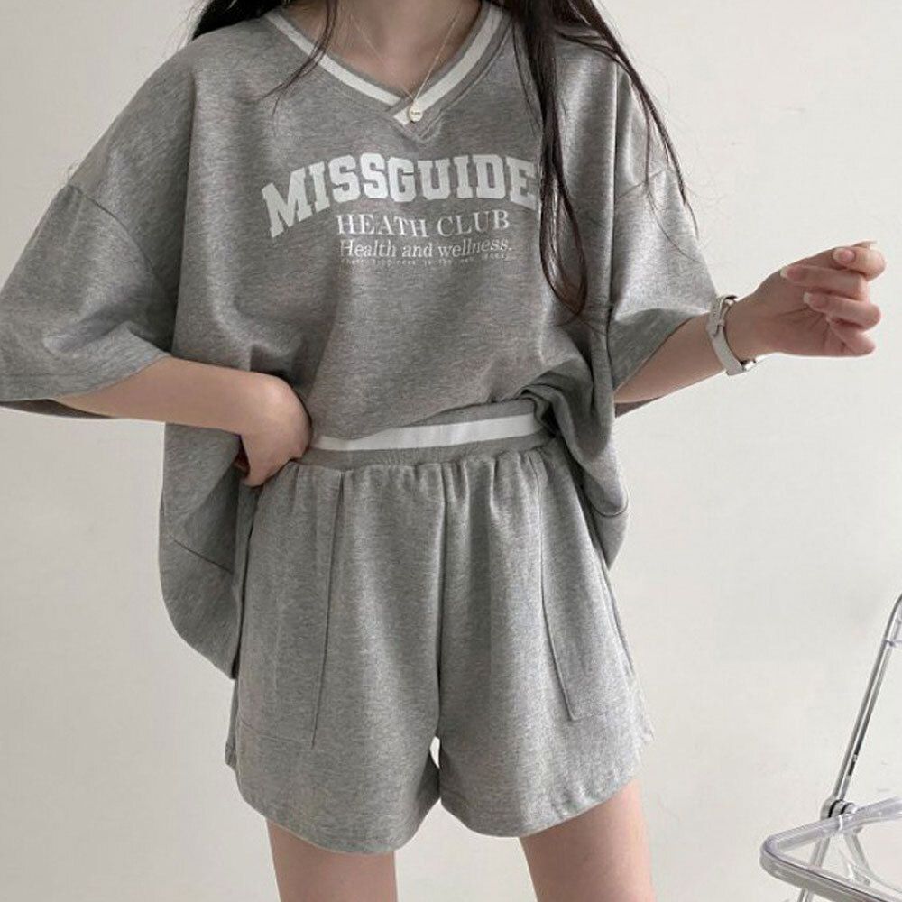 데일리 여성 바다 여행 코디 브이넥 반팔 반바지 셋업