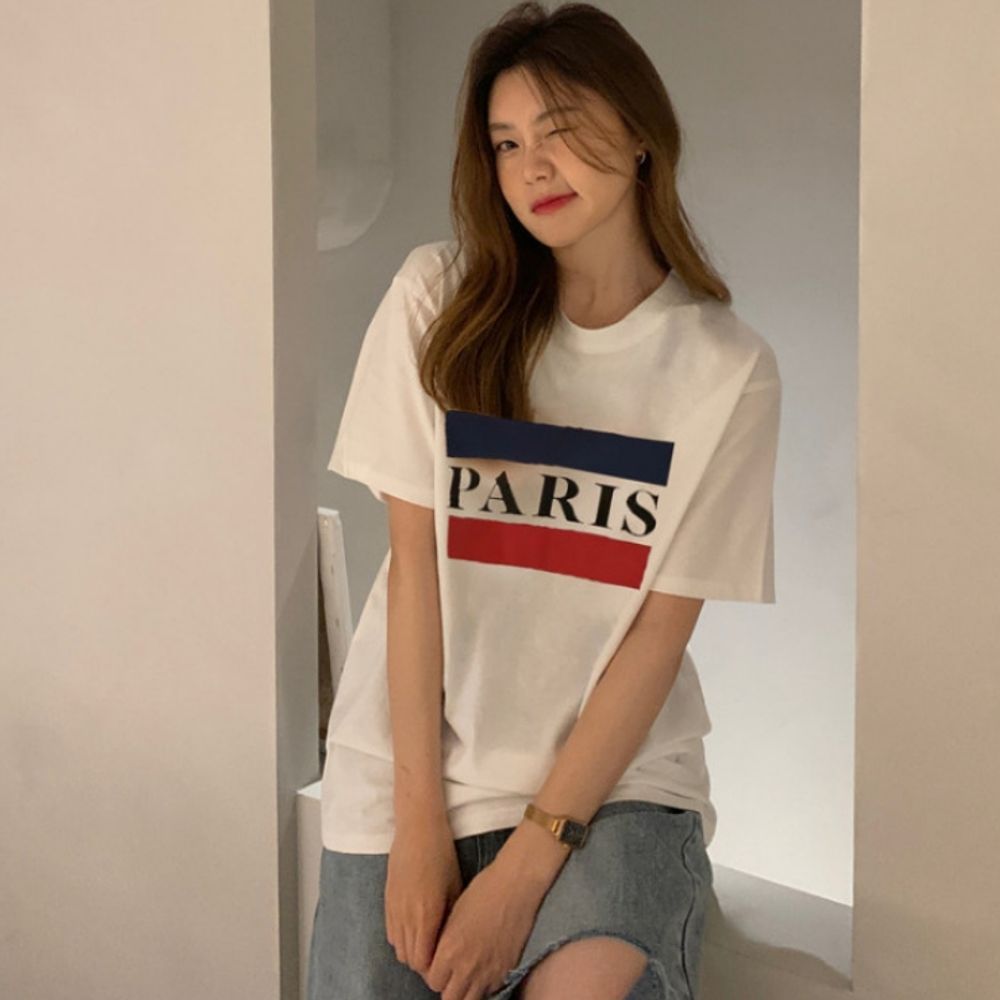 파리스 여성 반팔 티셔츠 오버핏 여자 여름 반팔티