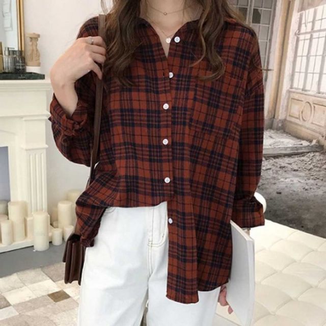 남방 코디 긴팔 여자셔츠 체크 대학생 가을룩 여성남