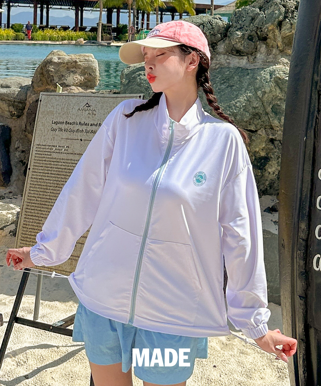 [MADE/44~88] 브라이트 래쉬가드 커플 빅사이즈 수영복 긴팔 바캉스 집업 커버 하이넥 수영복 커버업 비키니 여름 스윔웨어 비치웨어