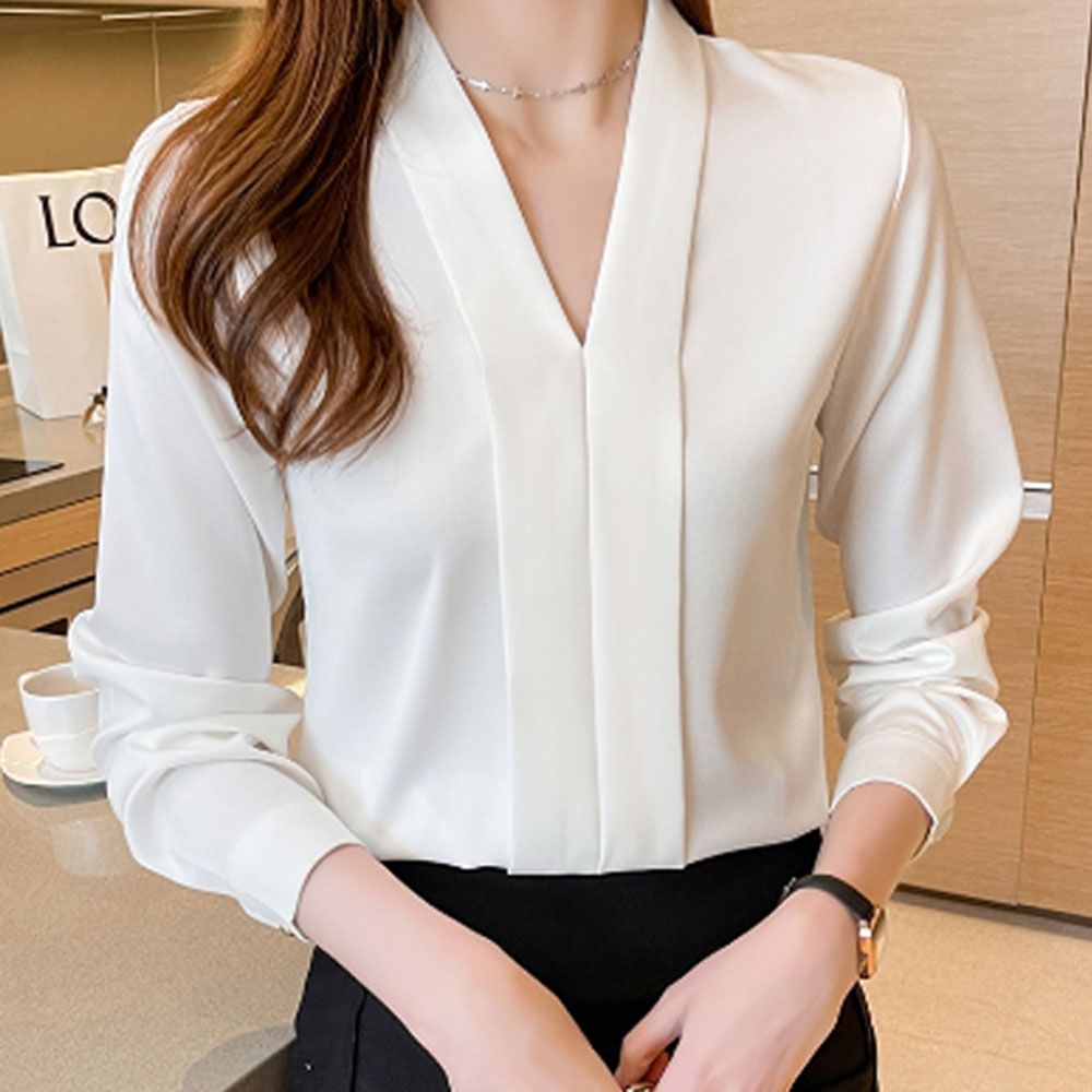 긴팔 셔츠 블라우스 V넥 무지 하객룩 오피스룩 2컬러