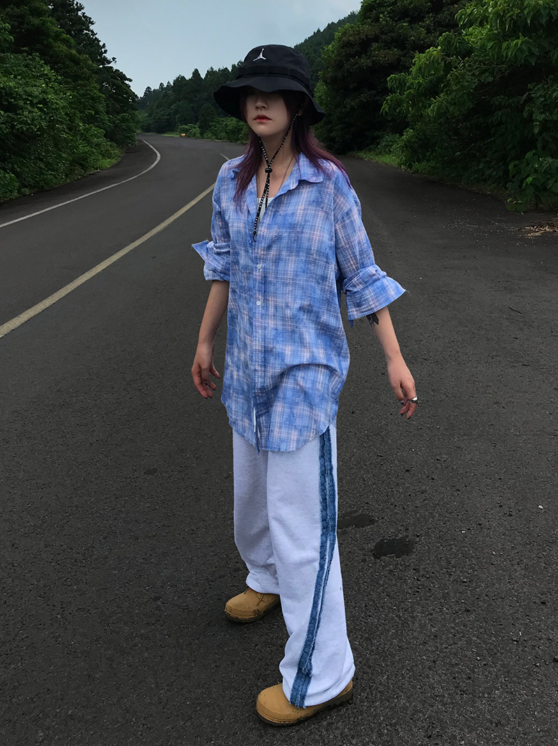(*당일발송) DENIM TRACK TRAINING PT (white melange / black)