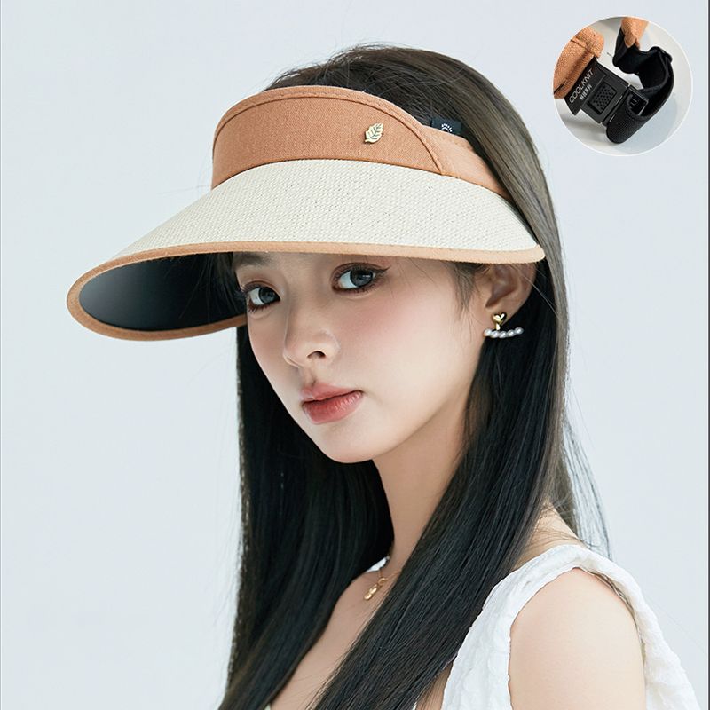 스타일아유 나뭇잎 로고 오픈탑 모자 밀짚 모자 넓은 챙 자외선 차단 모자 야외 활동용 썬캡 CA0129