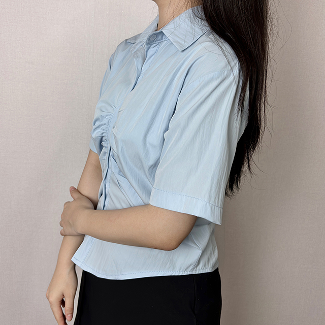 [~110 5XL 가슴셔링/러블리]반팔 셔링셔츠🧡빅사이즈 체형커버 쿨소재 셔츠 셔링 반팔 여유핏 넉넉핏 여리핏 여름 가을 캐주얼 러블리 페미닌 데일리 셔링셔츠 [315]