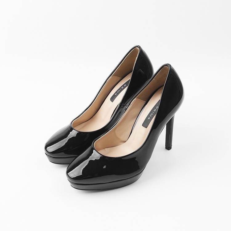 펌프스 구두 힐 11cm 여성 하이힐 에나멜 라운드토 가보시 킬힐 높은굽 정장구두 블랙
