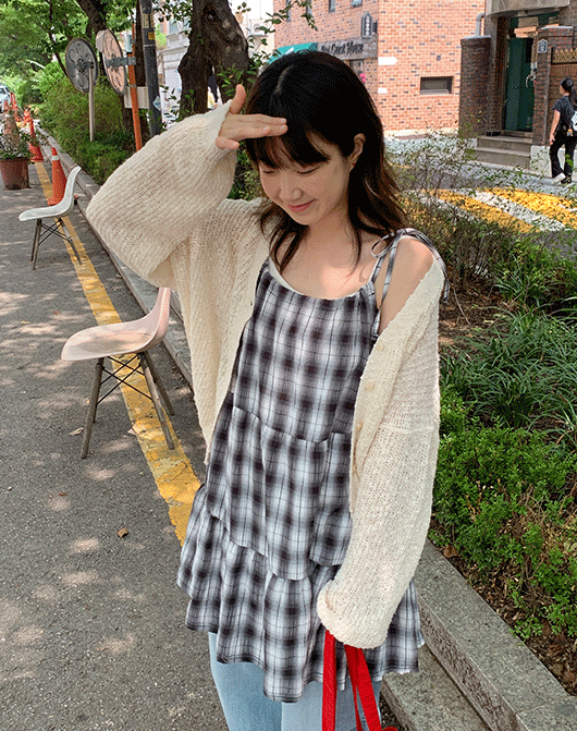 튜다 체크 리본 캉캉 미디 원피스 (2color)
