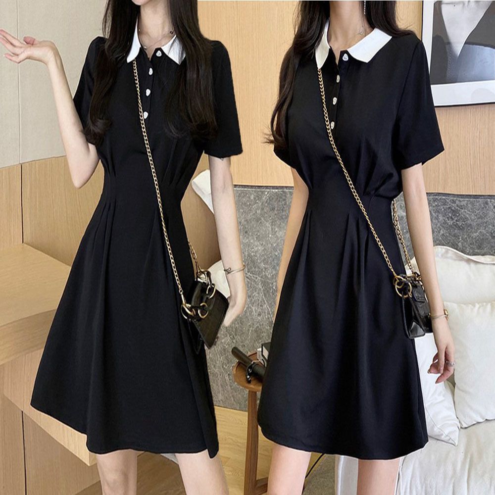 여자 카라 A라인 핀턱 블랙 미니 원피스 하객룩