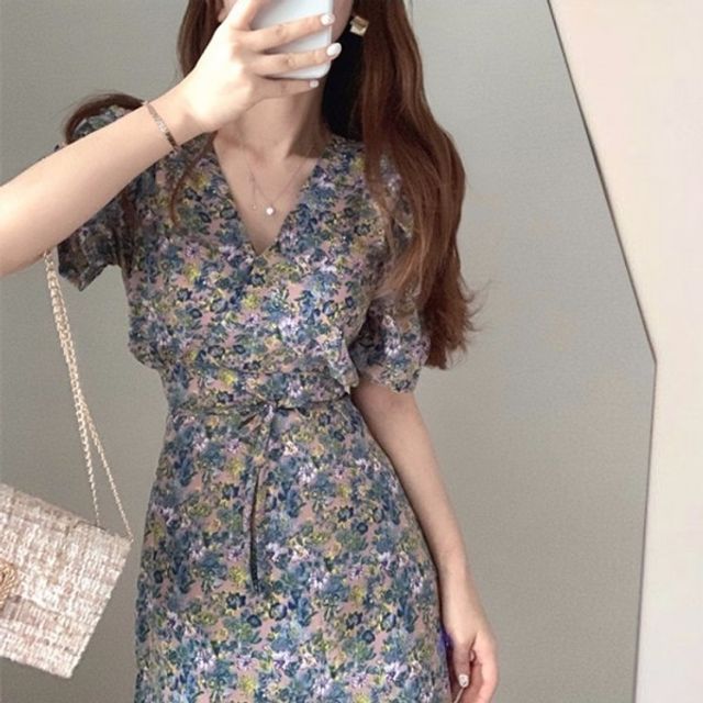 하객 고급 여름원피스 블루 룩 오피스 반팔원피스 패