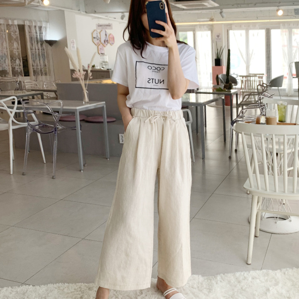 키작녀 린넨 바지 여성 와이드팬츠 여름 여자 편한 바지 면 코튼 밴딩 2color