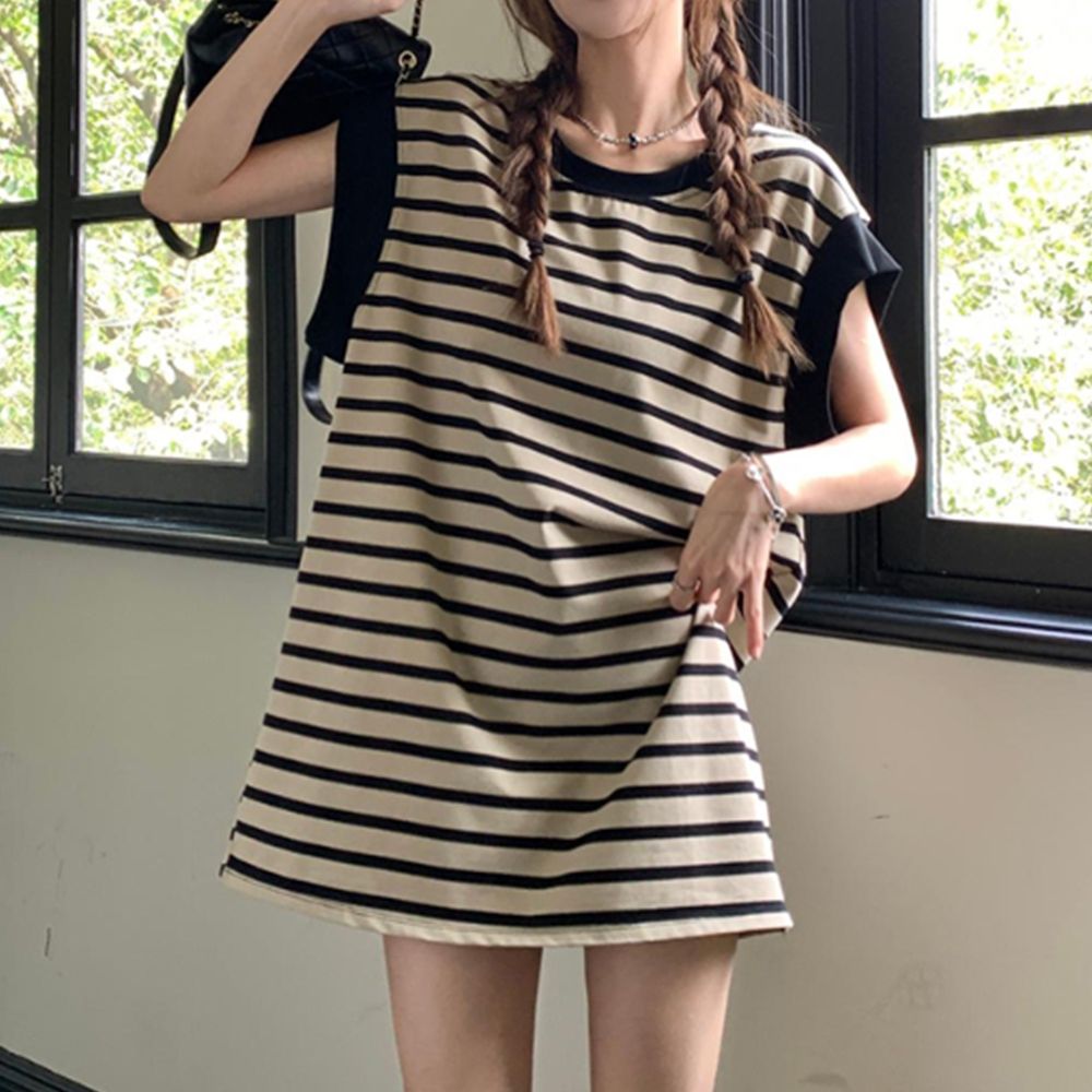 여성 여름 캡소매 단가라 미니 원피스 대학생 10대