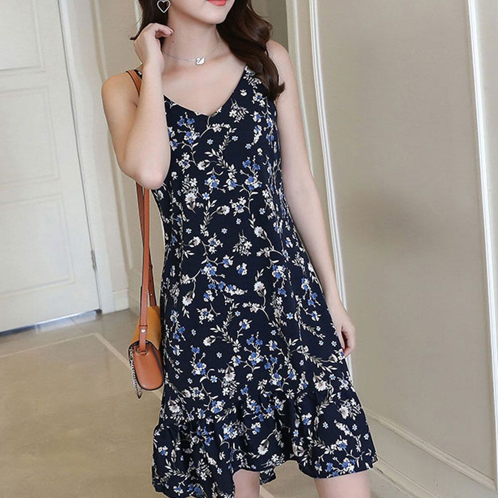 패션 여성 여름 바다 여행 코디 끈나시 브이넥 원피스