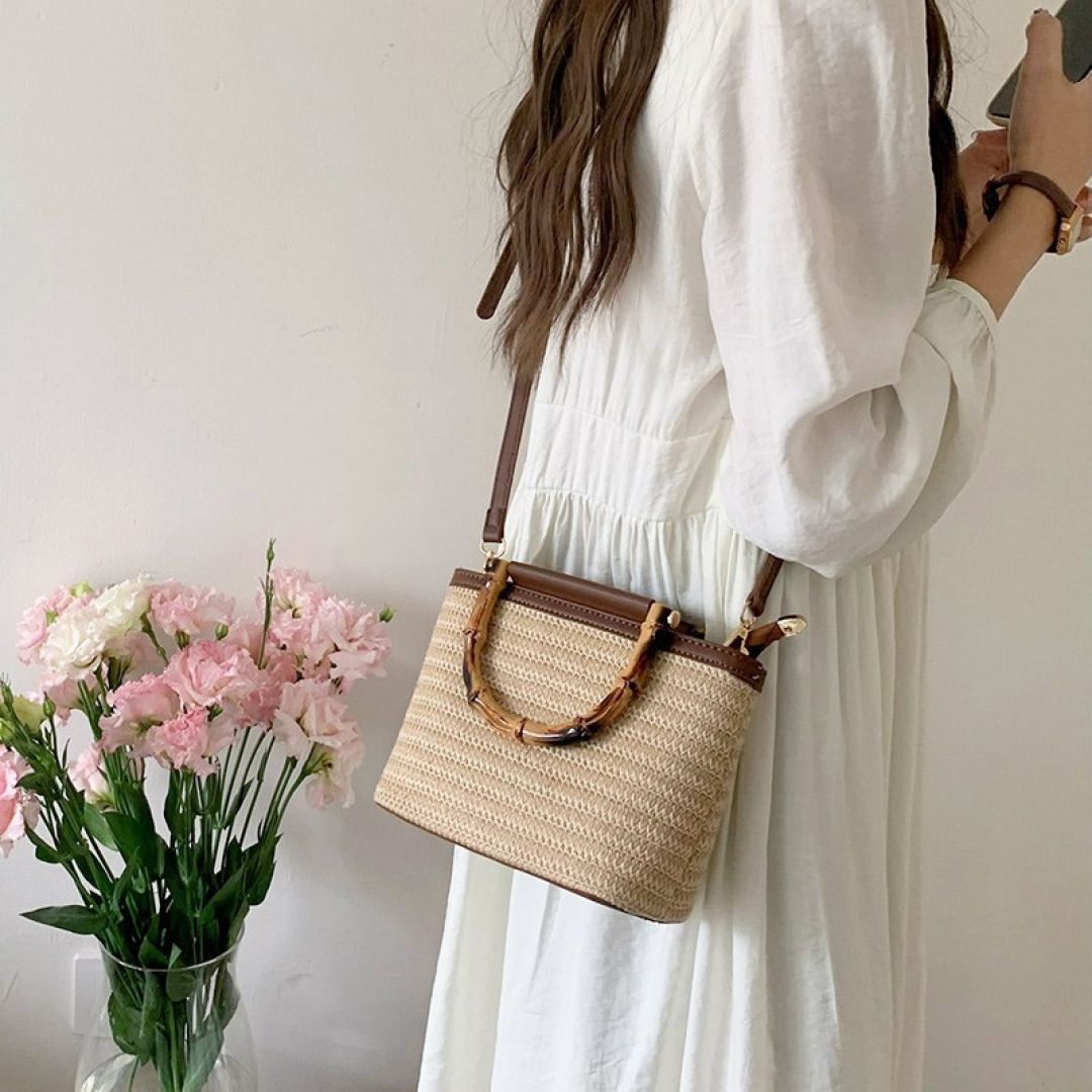 여성 미니백 대나무 핸들 밀짚 크로스백 데일리 캐주얼 가방 MP53