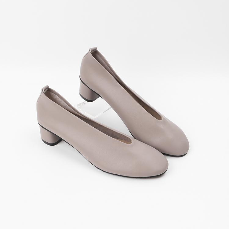 여성 펌프스 구두 힐 4cm 소가죽 발편한 통굽 미들힐 둥근코 기본 민자 쿠션 그레이
