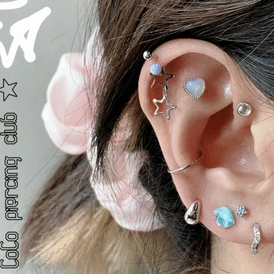 [2개이상 할인] 소라 하트 앤 스타투볼링 귀테리어 피어싱세트 / 하늘색 피어싱조합 추천