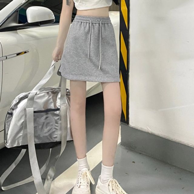 아이돌핏 치마 옆트임 미니스커트 허리밴딩 스트링 캐