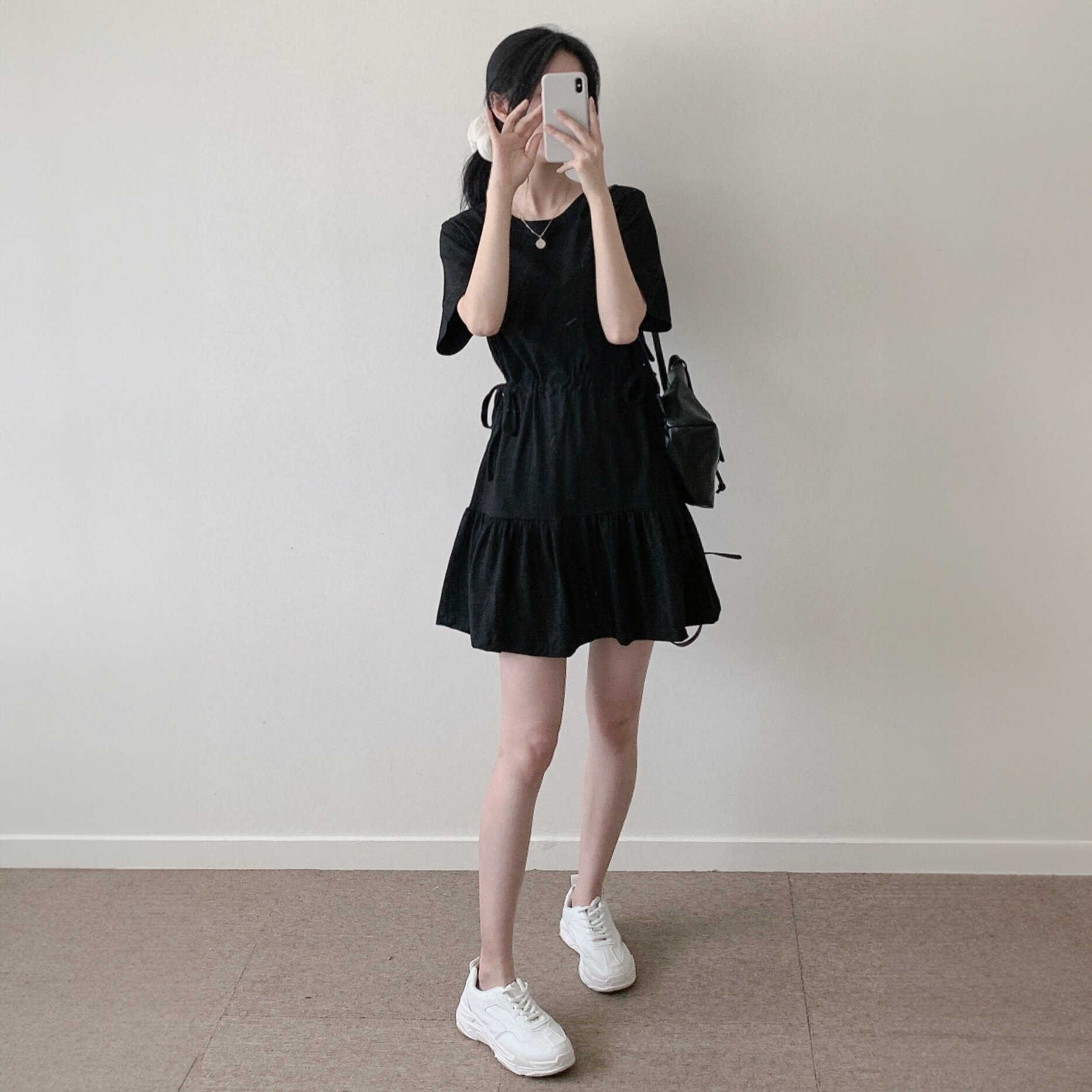 (당일) [데일리룩/꾸안꾸] 캉캉 옆리본 프릴 키작녀 코튼 반팔 원피스 A라인 스커트 치마 (2color)