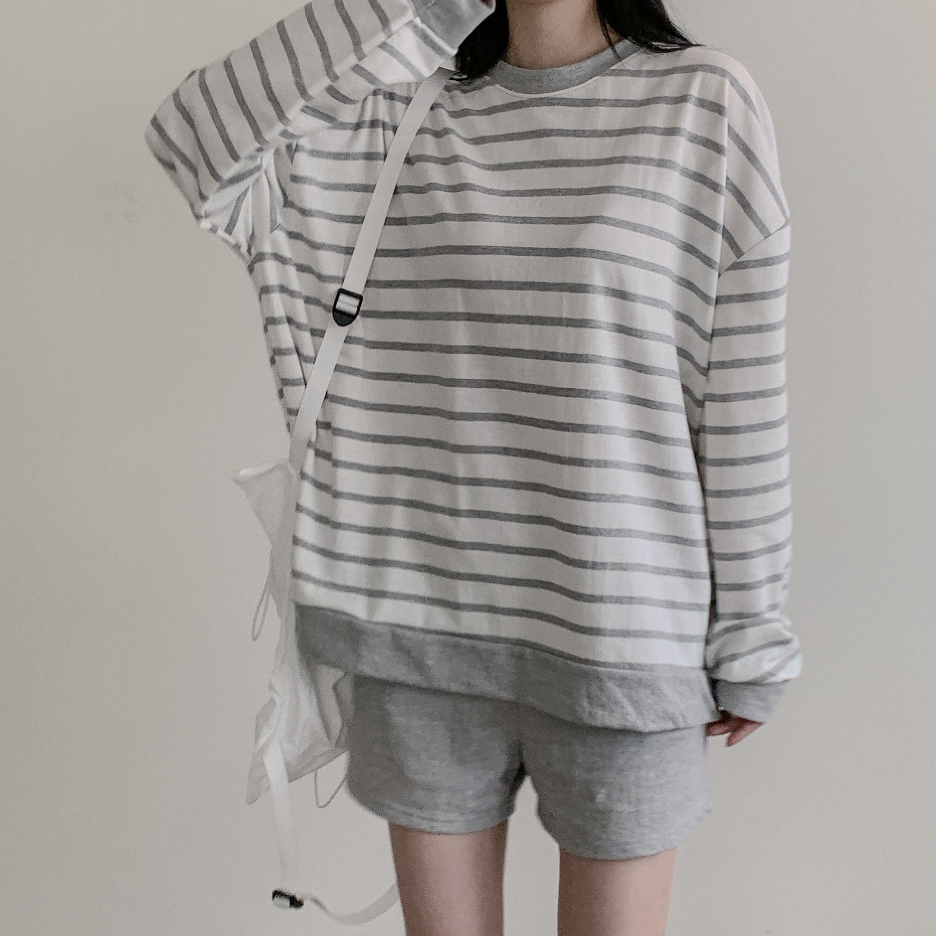 (당일) [SET/마린단가라] 스트라이프 맨투맨 + 밴딩 트레이닝 반바지 투피스 세트 (2color) 시즌오프