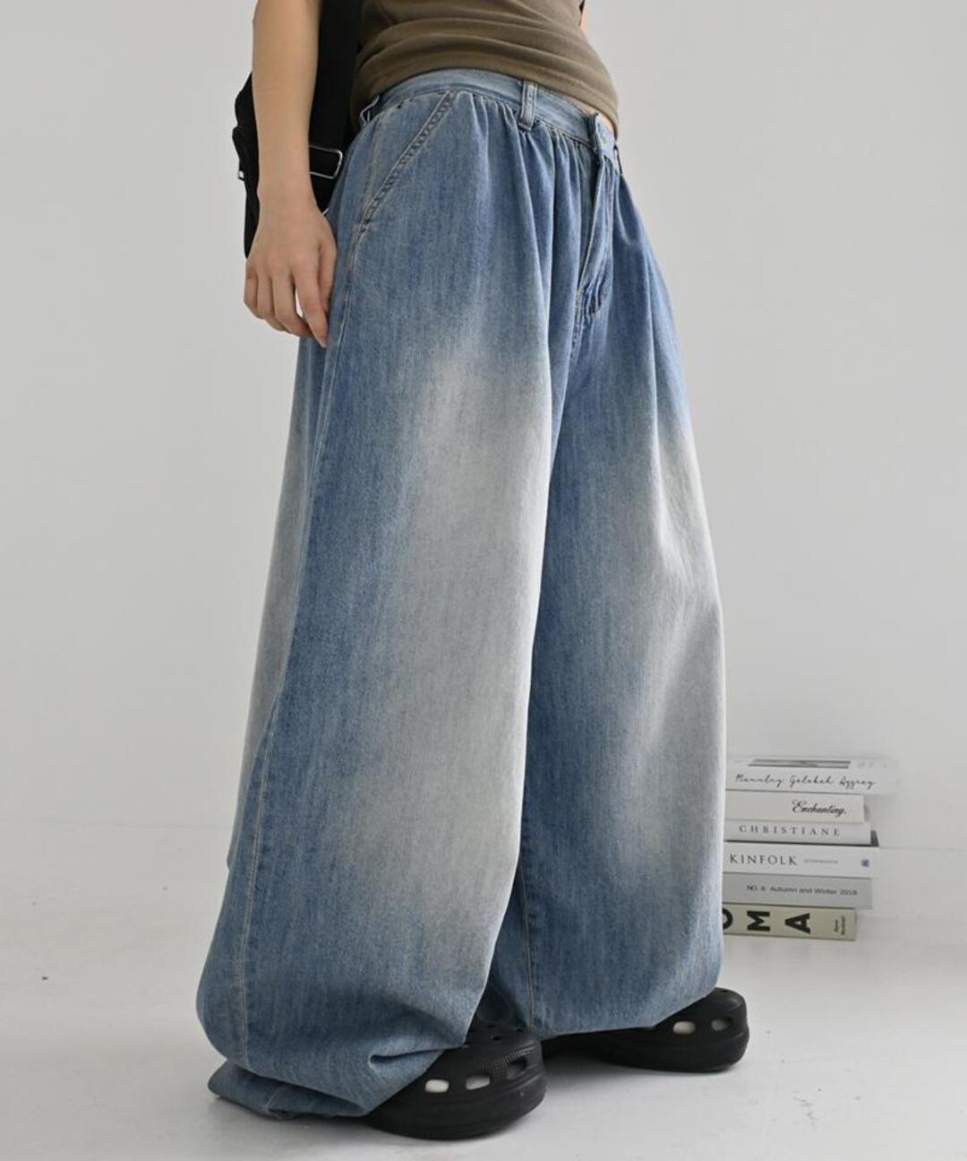 [OOTJ]에어리 셔링 메가와이드 후들 데님팬츠