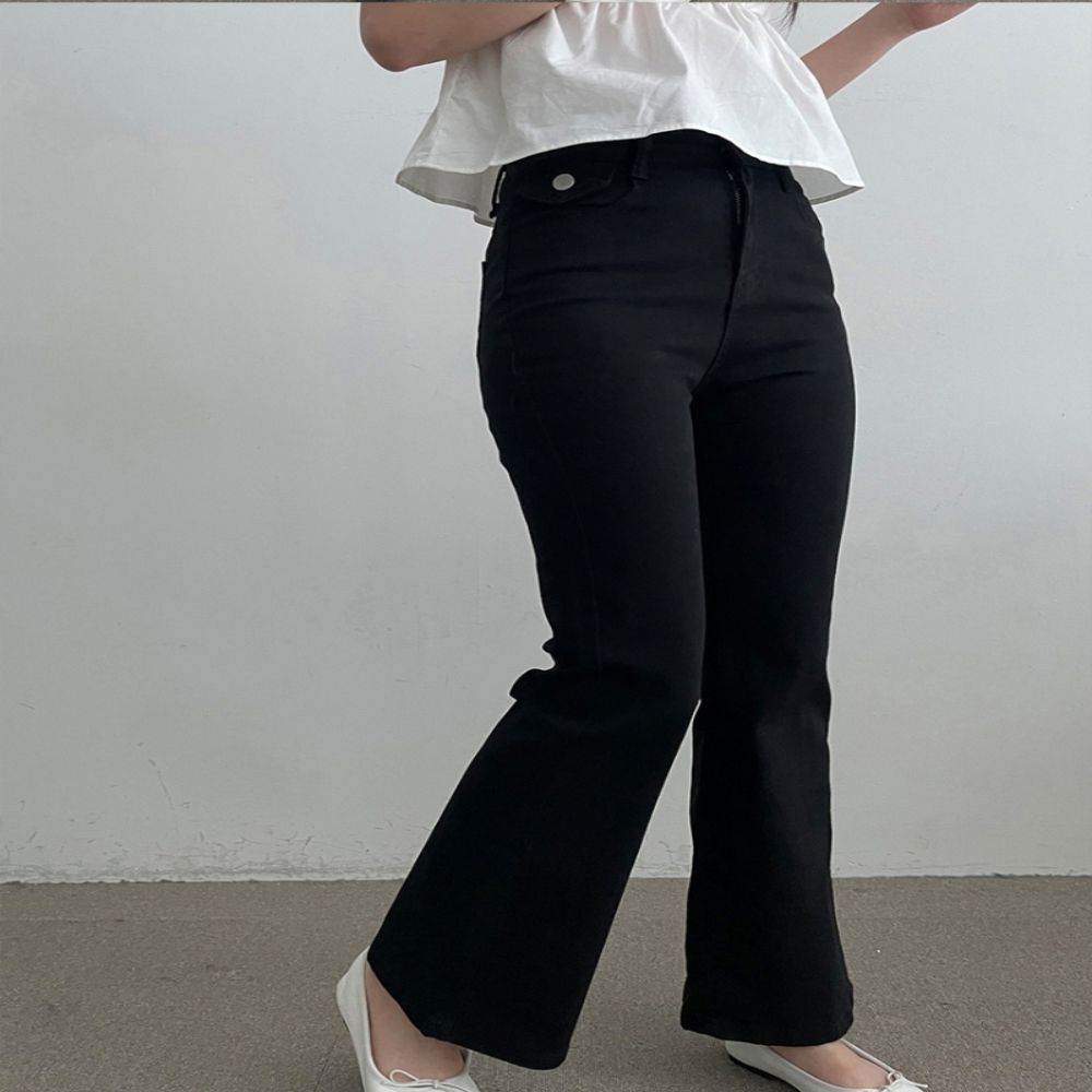 여자 세미 롱 부츠컷 골반청바지 블랙진 블랙 데님진