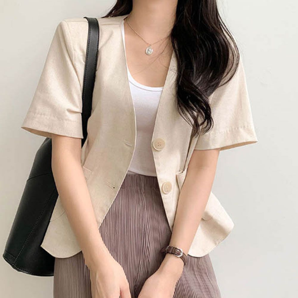 면 반팔 자켓 클래식 편한코디 팔뚝살 커버 출퇴근룩
