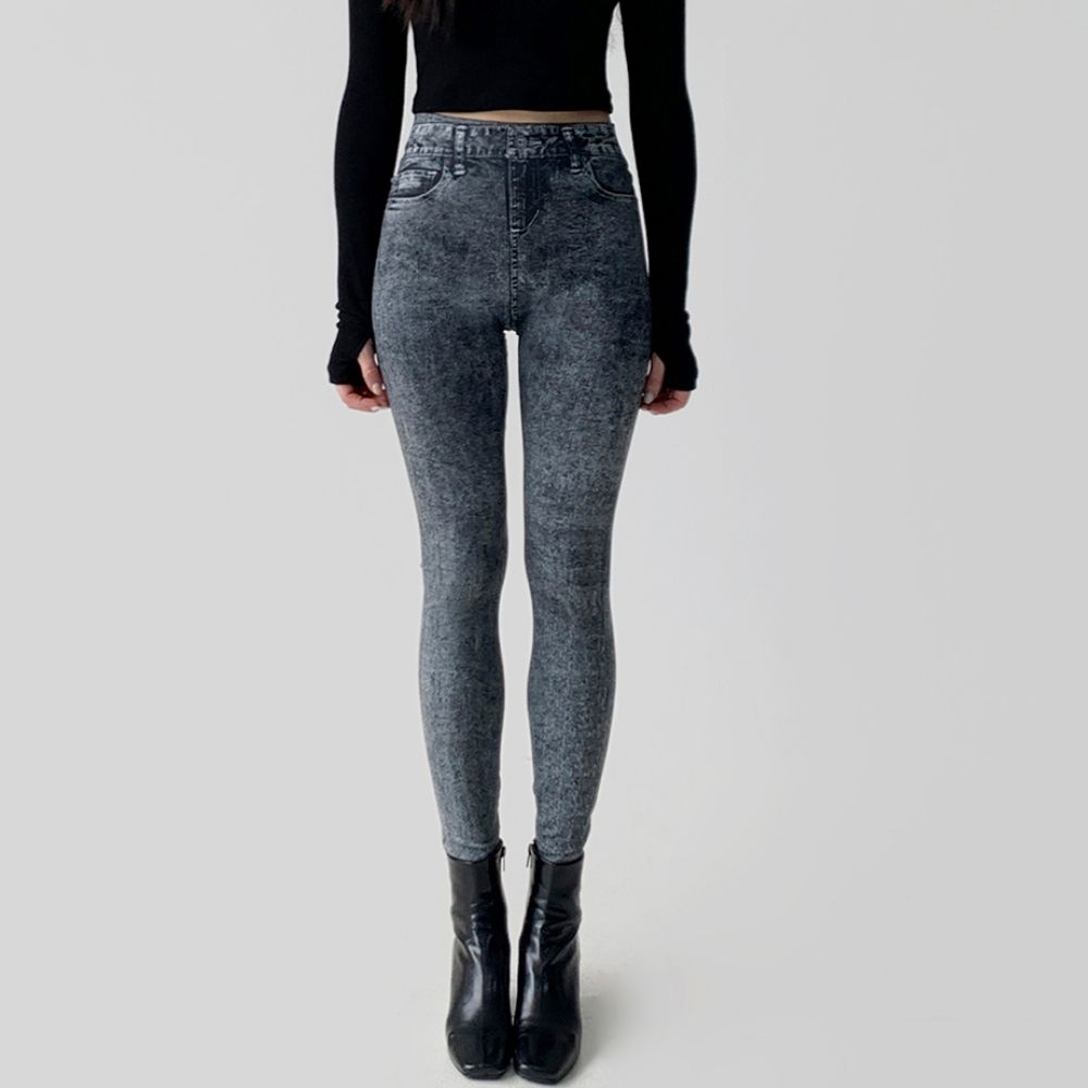돌청 패턴 워싱 여성 스키니진 스판 롱 레깅스