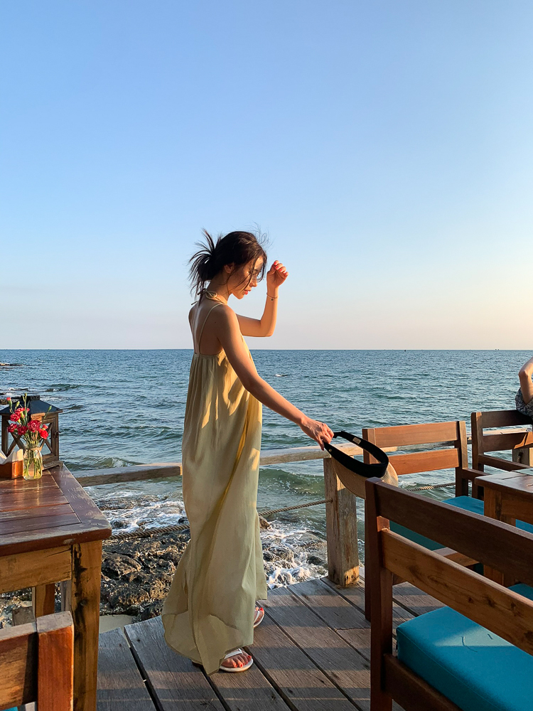 (당일출고) 실키 홀터 끈 나시 뷔스티에 백리스 쉬폰 셔링 플레어 롱 원피스 3color