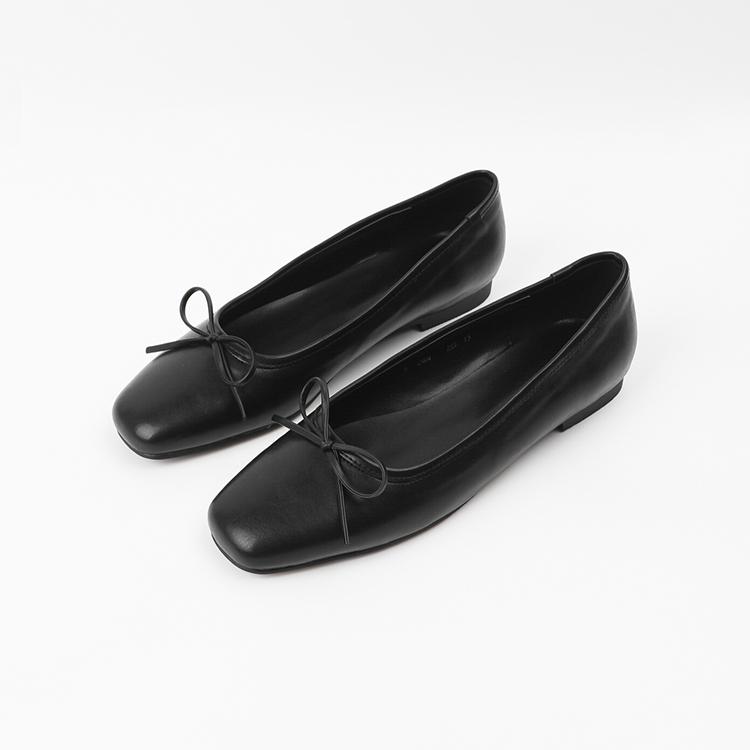 여성 펌프스 구두 1cm 여자 리본 플랫 슈즈 단화 로퍼 발편한 낮은굽 스퀘어토 블랙
