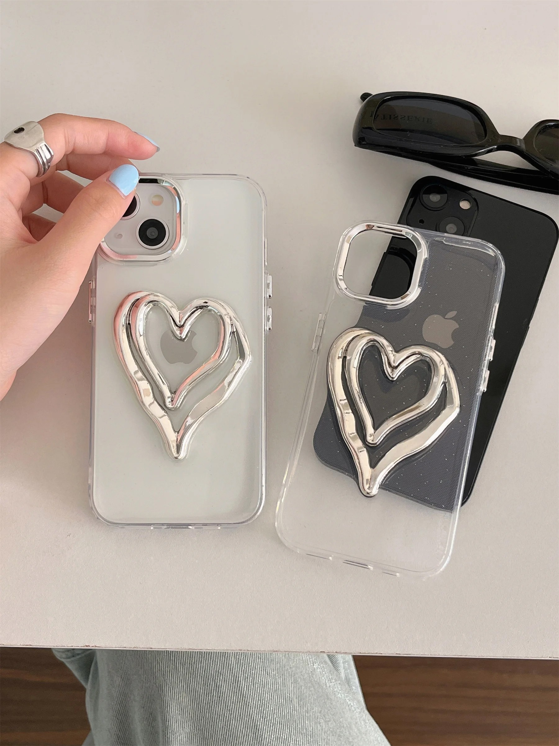 무료배송💖주문제작🫧 실버 하트 투명 캐릭터 Y2K 커플 아이폰 폰케이스 우정 키치 레트로 친구선물 생일 선물추천 범퍼 레트로 감성 연예인 귀여운 유니크 특이한 커스텀