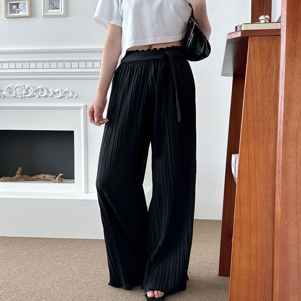 여자 여름 쿨 주름 플리츠 밴딩 와이드 팬츠 통바지