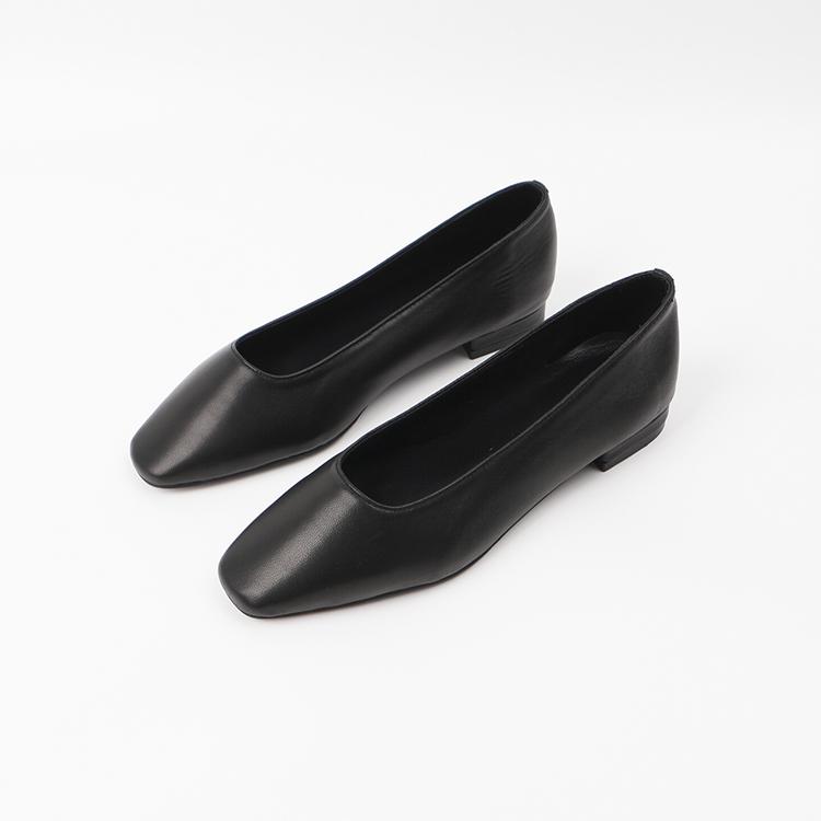 여성 플랫 슈즈 2cm 여자 펌프스 구두 단화 양가죽 낮은굽 스퀘어토 발편한 블랙