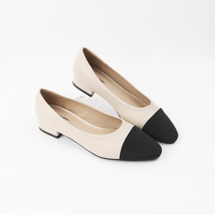 여성 펌프스 구두 힐 3cm 여자 플랫 단화 투톤 배색 발편한 낮은굽 아이보리