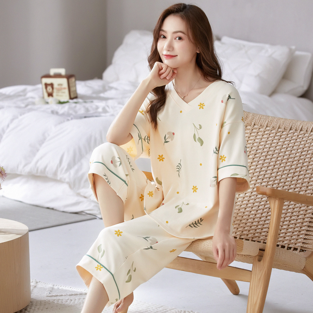 로리돌스 브라캡 내장 여성 칠부파자마. 프리/ 빅사이즈 노브라 잠옷 여름 홈웨어세트 여자 이지웨어 QM1450