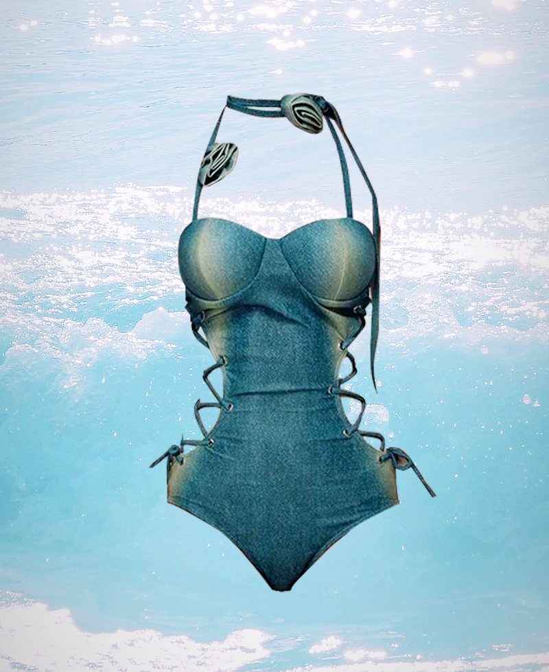 [마지막재고] 하트시그널 데님 코르셋 모노키니 초커 수영복 (워터파크,휴양지룩,휴가,수영복세트,글램룩,핫걸,비키니,진청,코사지,휴가,비치웨어,여행,페스티벌룩,워터밤,흠뻑쇼)