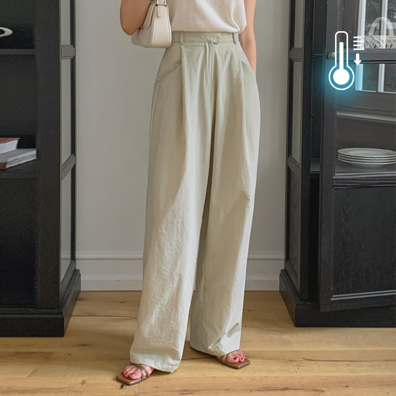 [쿨링와이드] [tps0525] 덴블 나일론 핀턱 와이드 팬츠(핀턱팬츠,와이드팬츠,와이드바지,나일론팬츠,쿨링팬츠,나일론바지,나일론팬츠,출근룩)