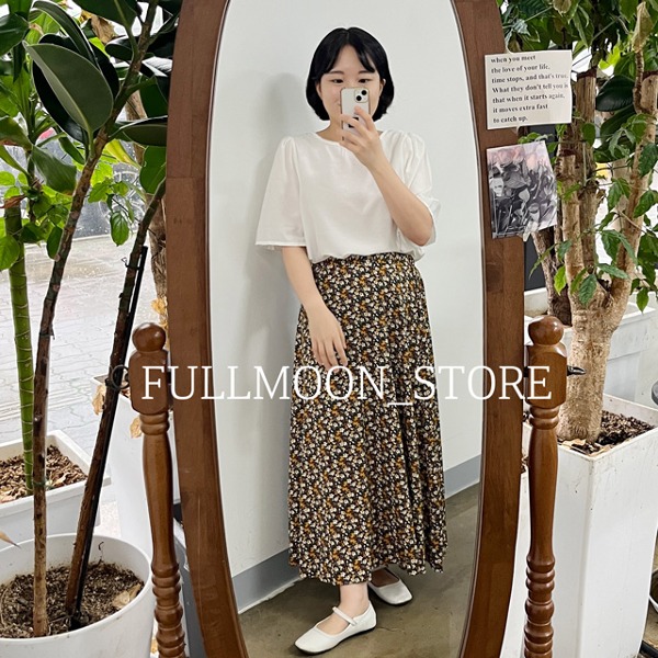 SK [148 키작녀쇼핑몰] 플라워 뒷밴딩 플레어 롱 스커트