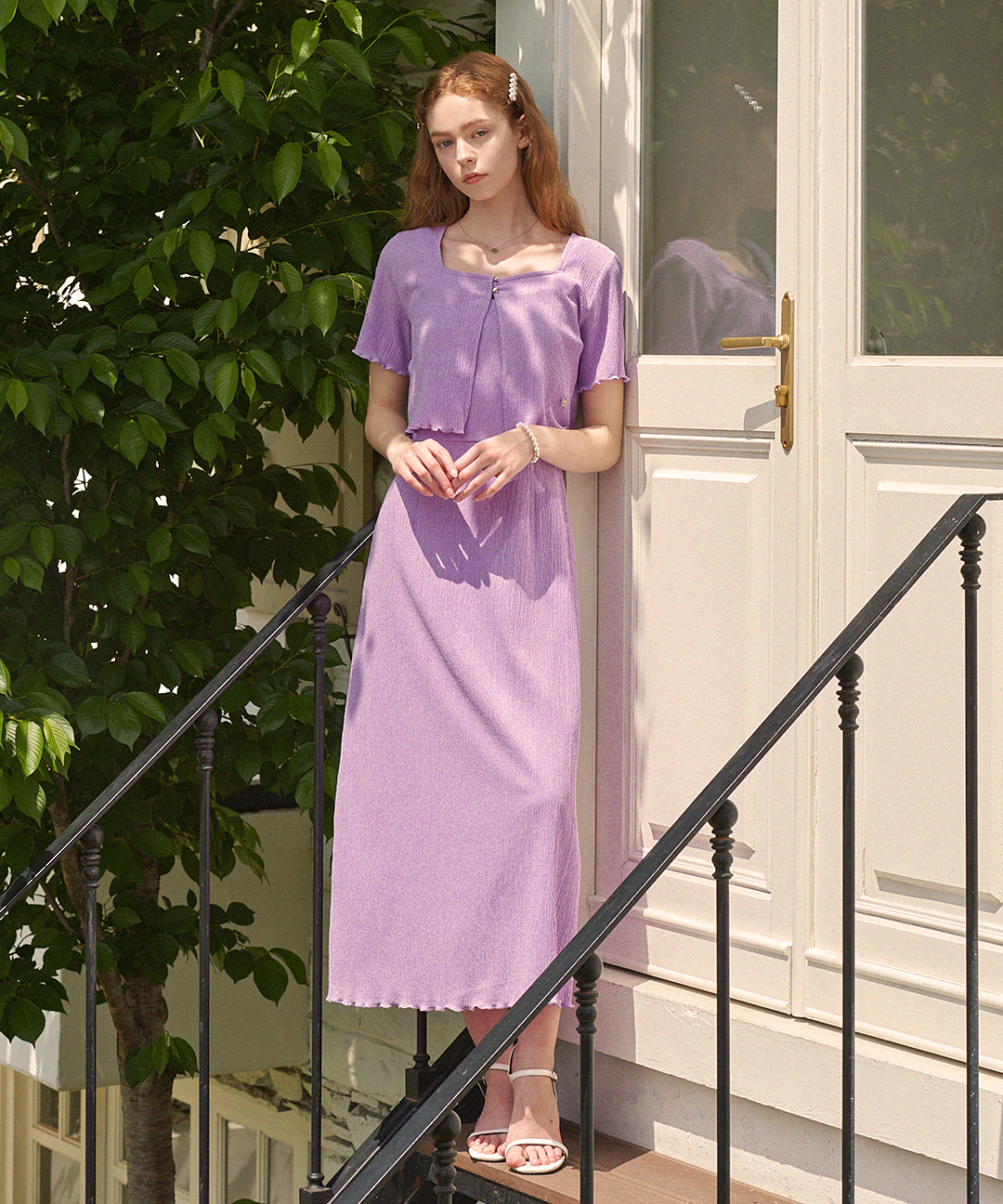 [44-120]마쉬멜로우 링클 드레스-가디건 셋업 (여름/하객룩/바캉스룩/여행룩/데이트룩/러블리룩/링클/뷔스티에/롱원피스/스퀘어넥/빅사이즈/자체제작)