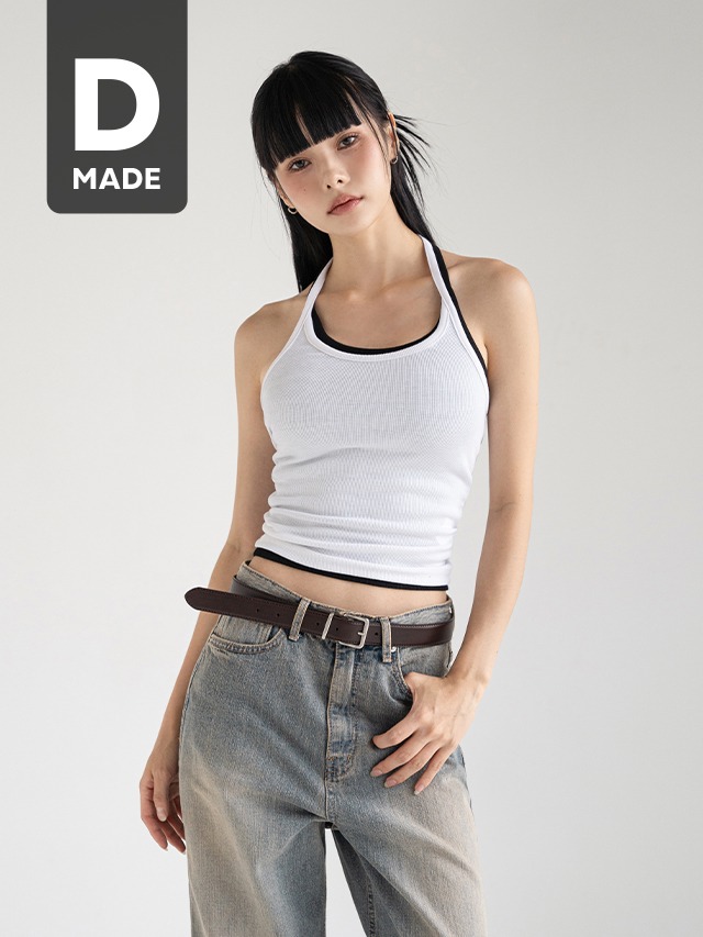 [1천장돌파][MADE] 빅사이즈 44-99 알로 스트랩 홀터넥 스판 골지 레이어드 세미 크롭 나시