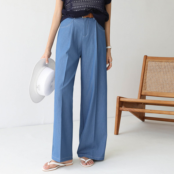 [WOW 팬츠] 벨트set 핀턱데님 와이드팬츠 #710454