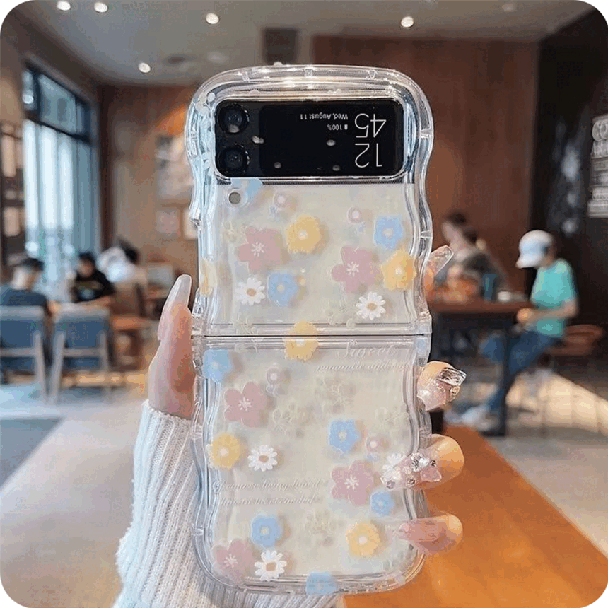 플라워 물결 투명 Z플립6 Z플립5 4 3 갤럭시 지플립 제트플립 심플 커버 소프트 실리콘 러블리 귀여운 보호 케이스