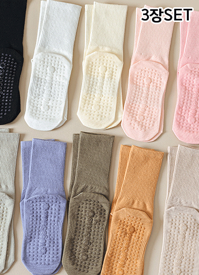 [3장세트] 10컬러 단색무지 솔리드 논슬립장목양말 - 미끄럼방지 실리콘양말 필라테스 요가 홈트 롱양말