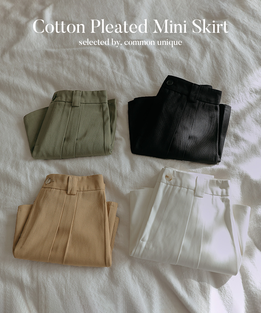 [S-2XL/숏,기본 기장옵션] 유베이 코튼 플리츠 미니 스커트 (당일배송/가을/간절기/A라인/데이트룩/하객룩/개강룩/빅사이즈/블랙/베이지)
