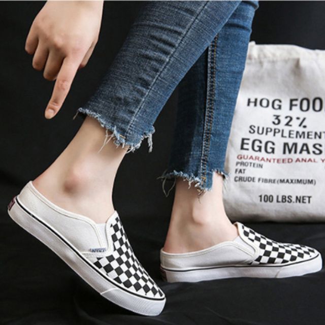 캐주얼 여성 체크 뮬 운동화 슬립온 캐주얼 슈즈 신발