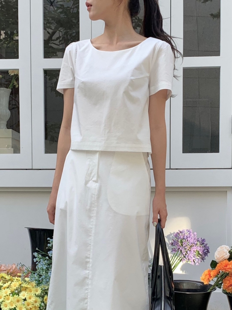 vergamot 베르가못 마일드 썸머 코튼 크롭 반팔 블라우스 2color