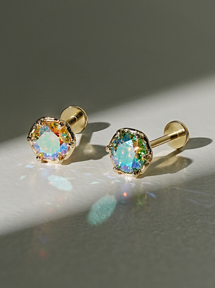 [0.8mm]14K 인터널 모이사나이트 다이아 오로라 라블렛 피어싱 3부